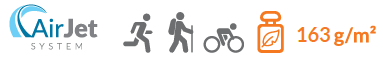 - Uszlachetniona przędza powstała z mikrowłókien elastanu i poliamidu sczepianych ze sobą za pomocą strumienia powietrza. Jej włókna wyróżniają się wyjątkową gładkością i wysoką odpornością na ścieranie. Zapewnia to niezmienne wymiary i trwałość produktu, mimo wieloletniego użytkowania oraz wielokrotnego prania. Przędza o zwiększonej elastyczności pozwala na lepsze dopasowanie produktu do ciała, co sprawia, że transport wilgoci jest efektywny.