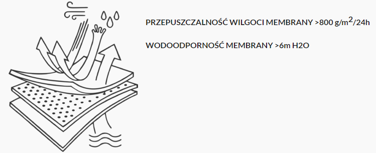 -membrana DRY-PRO dostosuje się do zmiany warunków otoczenia, reagując na temperaturę, poziom wilgotności i natężenie aktywności fizycznej. Zapewnia ochronę przed wiatrem, chłodem oraz wodą, jednocześnie oferując wysoki poziom oddychalności.